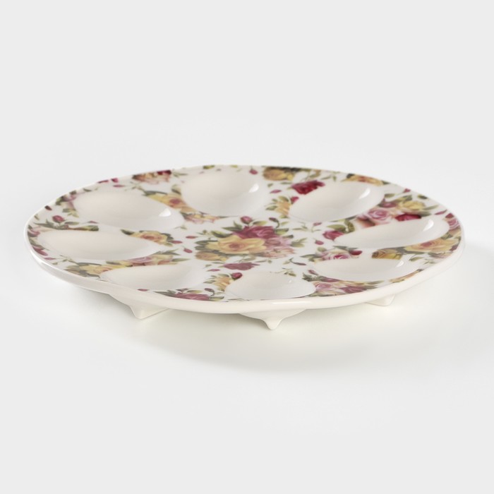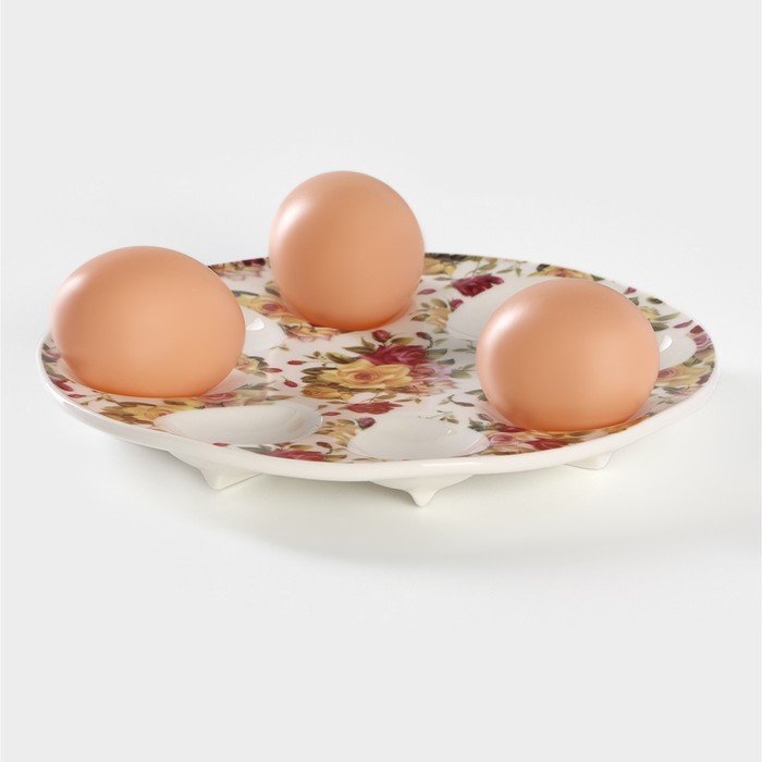 Подставка для яиц станет оригинальным решением для сервировки во время пасхальных торжеств и других пышных праздников. Посуда изготовлена из керамики и украшена тематическим рисунком. Оригинальный дизайн изделия делает его гармоничным дополнением практически к любому варианту оформления стола.