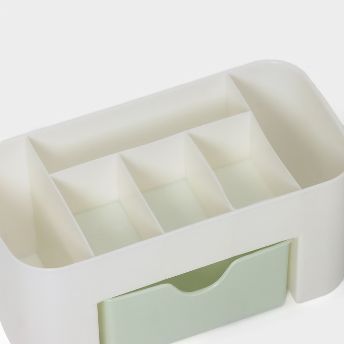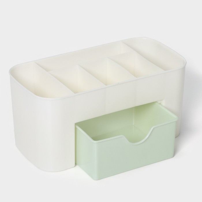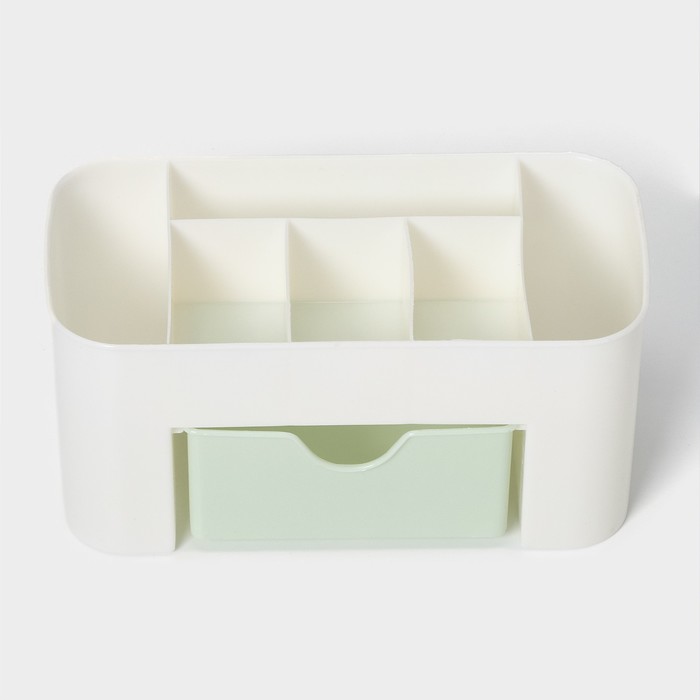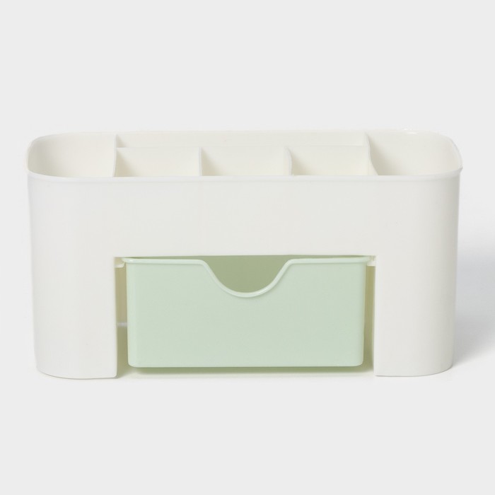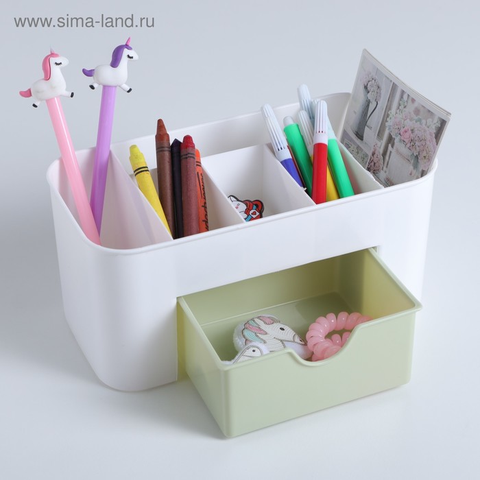 Органайзер изготовлен из прочного пластика и имеет 7 отделений разных размеров, что позволит вам удобно разложить все необходимые канцелярские принадлежности.