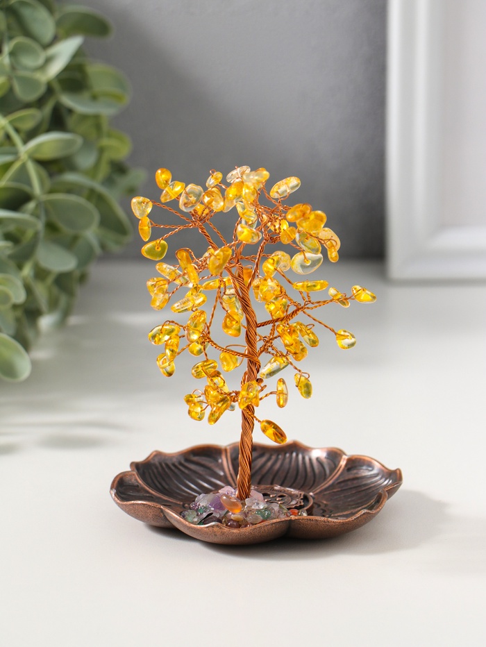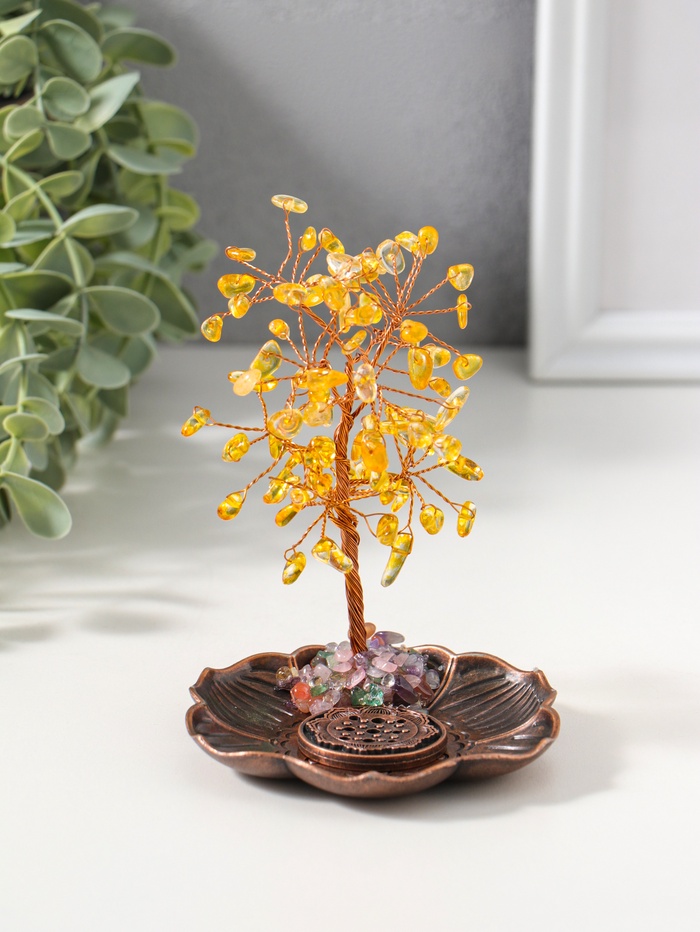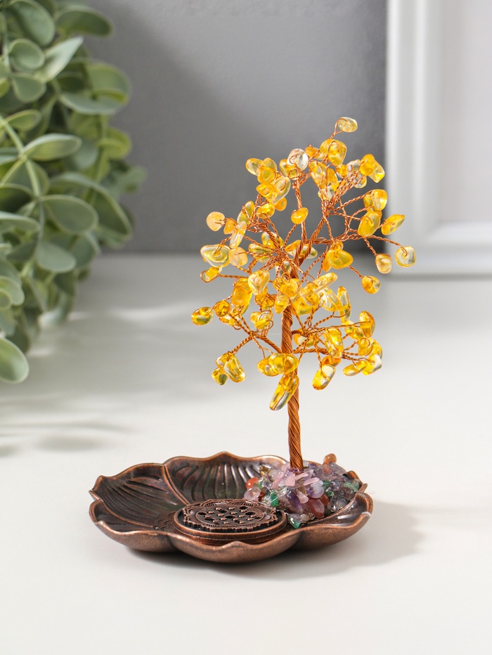 Подставка под благовония "Дерево на цветке" жёлтый 72 камня 9х9х13,5 см