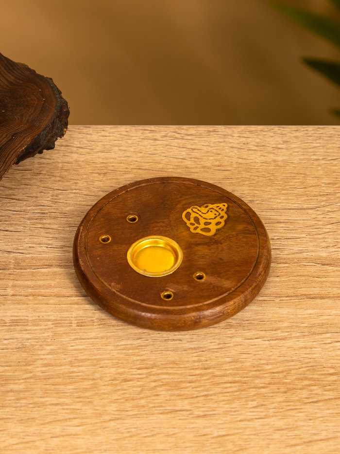Подставка под благовония круглая 8 см, дерево шишам, МИКС