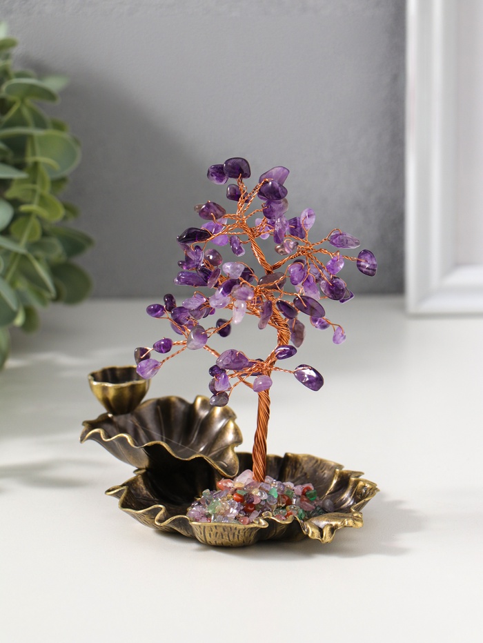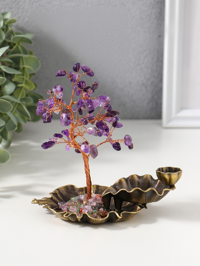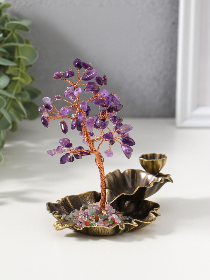 Подставка под благовония "Дерево на цветке" жёлтый 72 камня 9х9х13,5 см