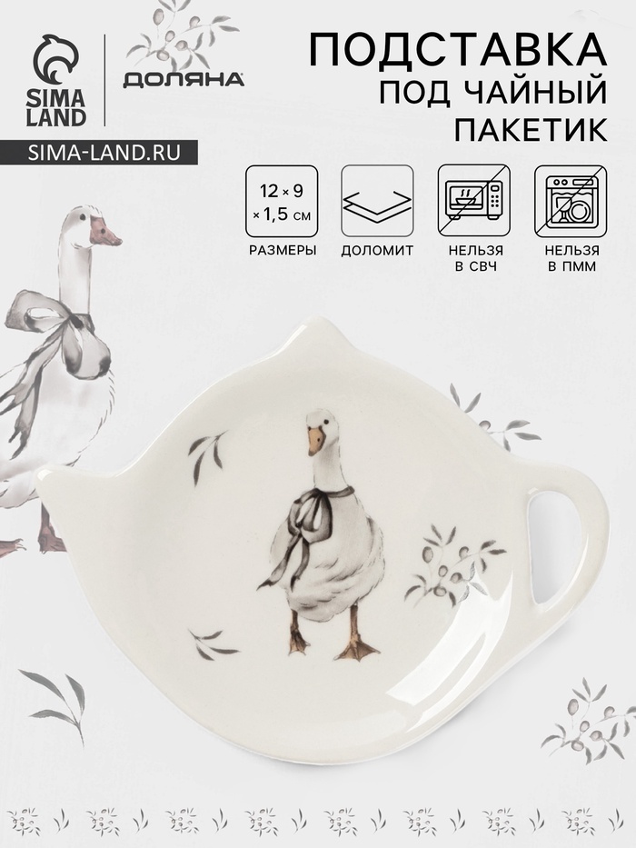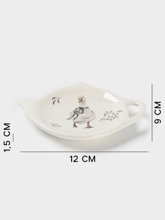 Эта подставка под чайный пакетик станет незаменимым аксессуаром для любителей чая. Керамическая подставка под чайный пакетик с рисунком привнесет в ваш дом атмосферу тепла и деревенского шарма. Подставка под чайный пакетик «Гуси» Доляна – отличный выбор для тех, кто ценит порядок и красоту в мелочах.