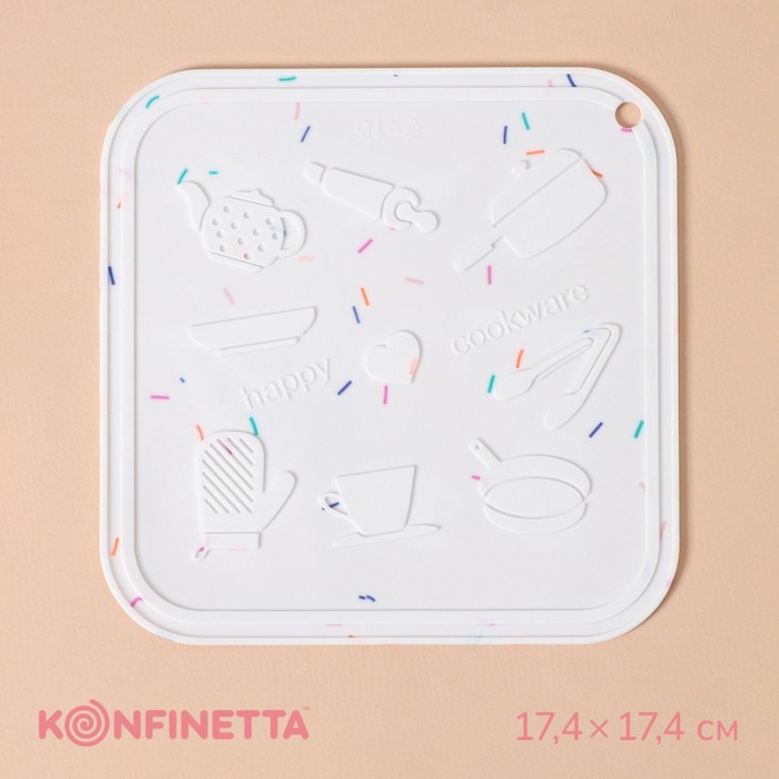 Подставка под горячее «Конфетти» поможет сохранить стол от пятен и повреждений. Помимо этого послужит хорошим украшением интерьера кухни и подойдёт в качестве подарка на любой праздник.