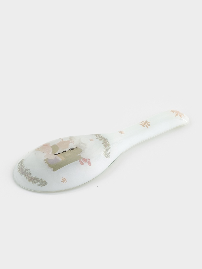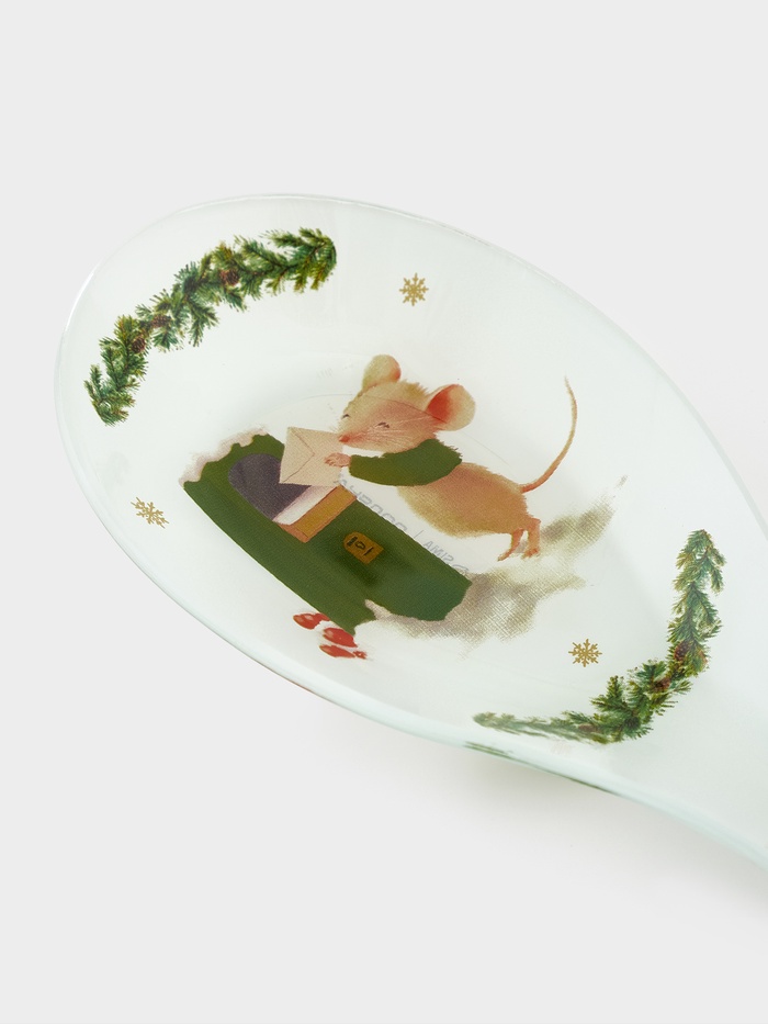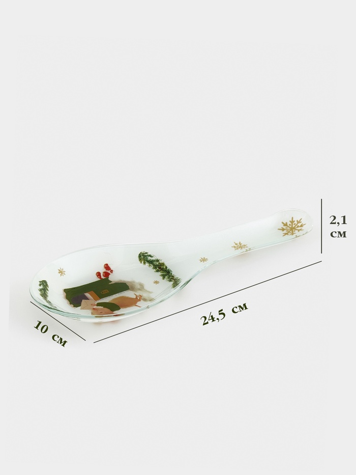 Даже мелочи могут быть праздничными! Подставка под ложку — белая стеклянная подставка с милым зимним рисунком, созданная для аккуратной сервировки новогоднего стола. Она решает простую задачу: держать ложку в чистоте — и делает это с теплом и характером.