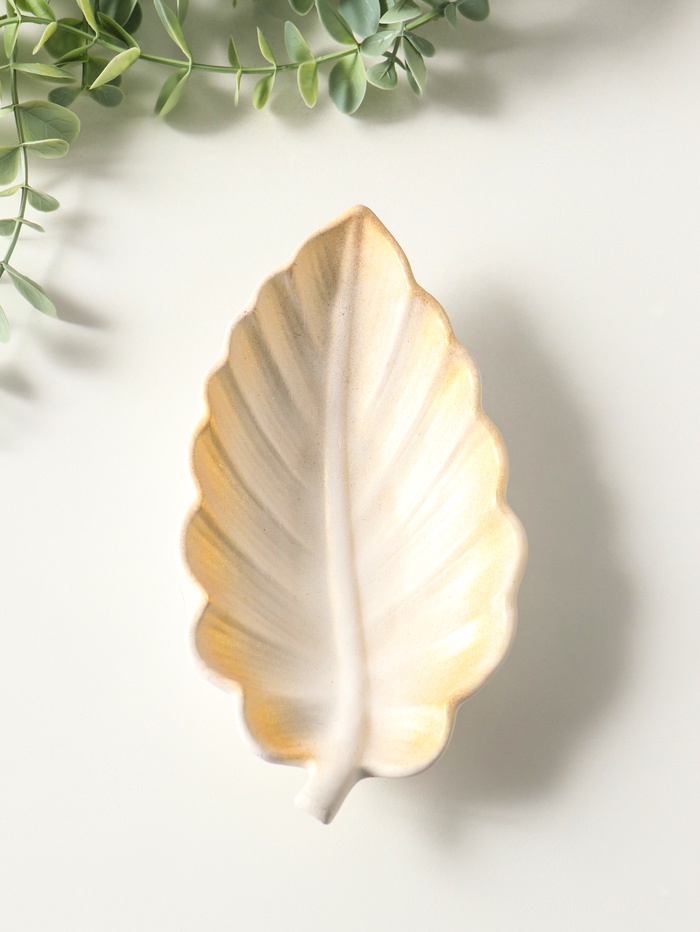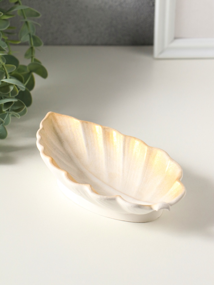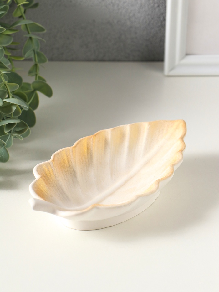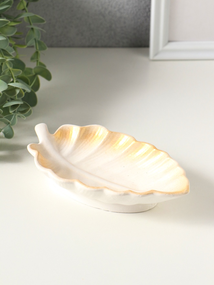 Подставка под мелочи "Лист" размер 3х18х10 см, цвет белый с позолотой