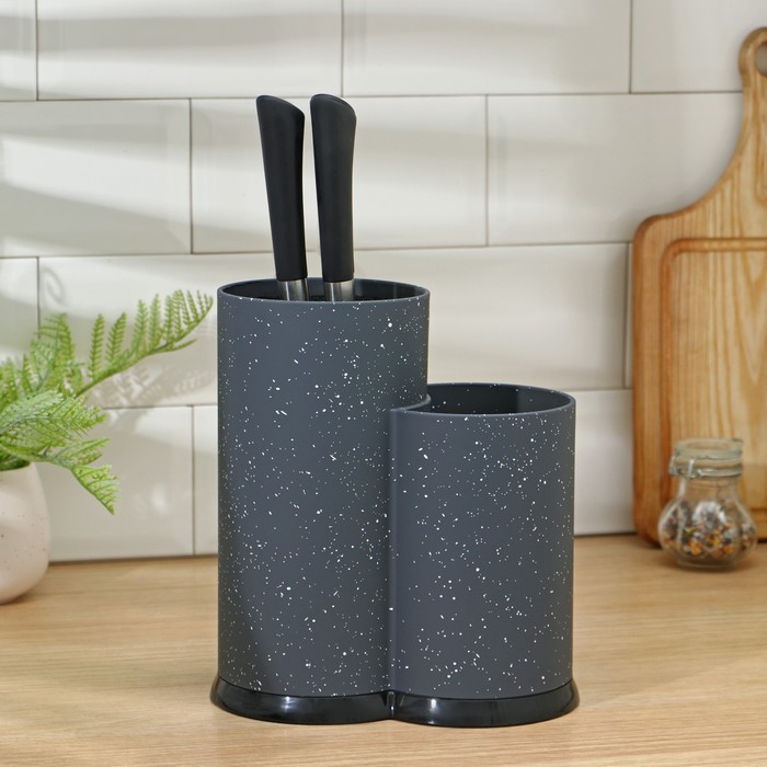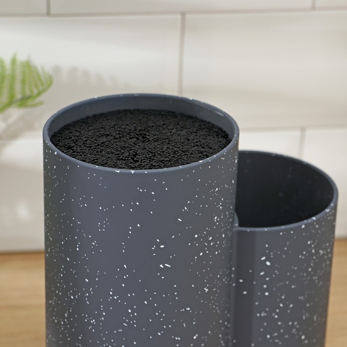 Подставка с наполнителем позволит рационально использовать кухонное пространство. Благодаря удобному приспособлению ножи можно хранить в одном месте, а лезвия — точить реже.