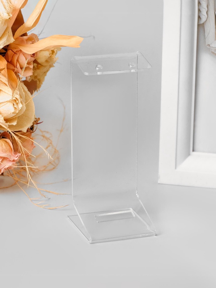 Элегантная подставка под серьги размером 4×4×6,5 см из прозрачного оргстекла — компактное и стильное решение для демонстрации украшений. Подходит для витрин ювелирных магазинов, торговых пространств и домашнего хранения. Подставка обеспечивает устойчивость и акцентирует внимание на украшениях, подчёркивая их изящество. Подставки из оргстекла (листовой акрил). Благодаря использованию 100% акрила, подставки имеют идеальную прозрачность, высочайший блеск и шикарный внешний вид. ВНИМАНИЕ: Изделия поставляются в матовой защитной плёнке, белого, синего, зелёного или прозрачного цвета, которую необходимо удалить перед оценкой качества или перед использованием.