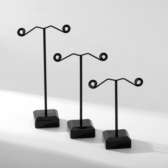 Этот набор из 3-х подставок будет отличным выбором как для личного использования, так и для профессиональной демонстрации украшений в магазинах или студиях. Компактные размеры и стильный чёрный цвет подставок делают их универсальными и удобными для хранения и демонстрации ваших украшений с максимальным комфортом и элегантностью.