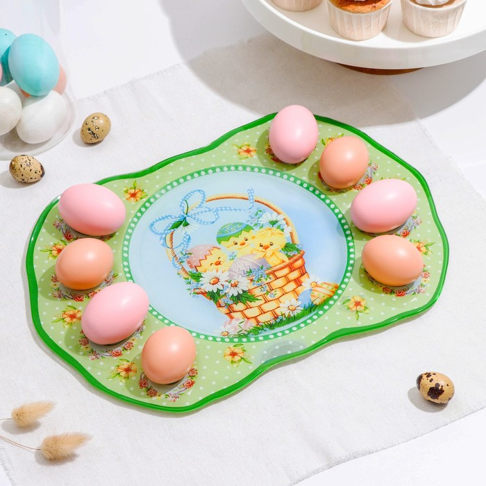 Подставка для яиц станет оригинальным решением для сервировки во время пасхальных торжеств и других пышных праздников. Посуда изготовлена из стекла и украшена тематическим рисунком. Классический дизайн изделия делает его гармоничным дополнением к любому варианту оформления стола.