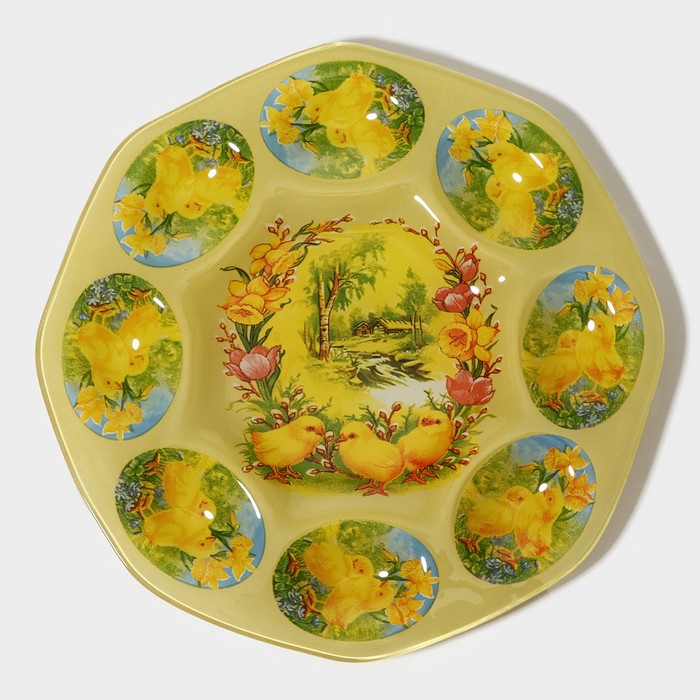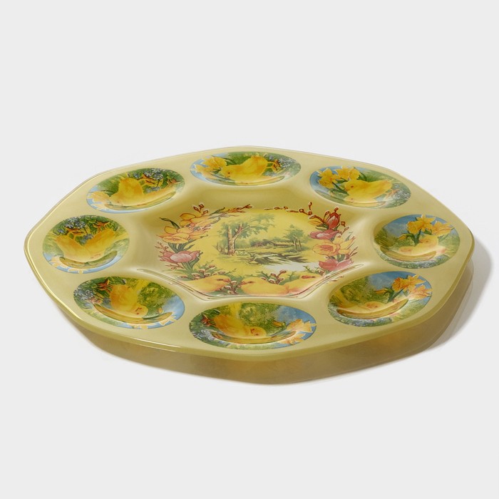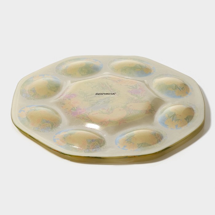 Подставка для яиц станет оригинальным решением для сервировки во время пасхальных торжеств и других пышных праздников. Посуда изготовлена из стекла и украшена тематическим рисунком. Классический дизайн изделия делает его гармоничным дополнением к любому варианту оформления стола.