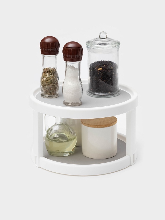 2. Поворотная конструкция 360-степени: с вращающейся конструкцией 360 ° вы можете быстро и легко получить доступ к любой специи или приправу, которая вам нужна. Больше не нужно искать в загроможденных шкафах или ящиках. Все ваши предметы, помещенные на проигрыватель, хорошо видны и находятся в пределах досягаемости