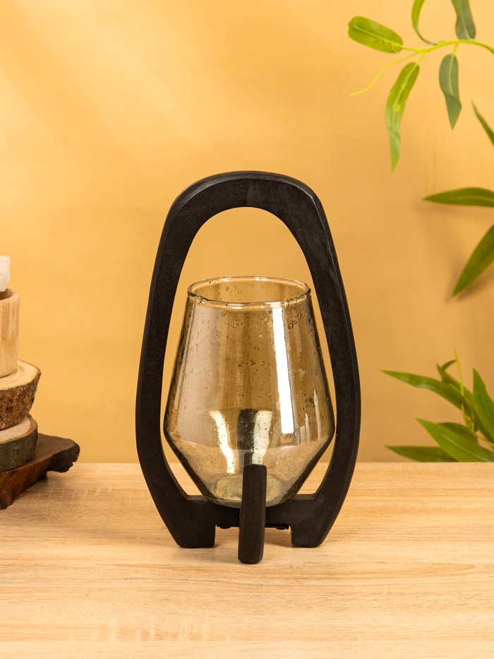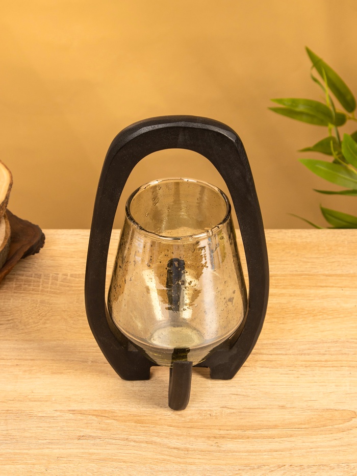 Подсвечник "Аура" 13х15х26 см, стекло, дерево