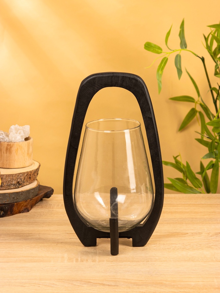 Подсвечник "Аура" 13х15х26 см, стекло, дерево