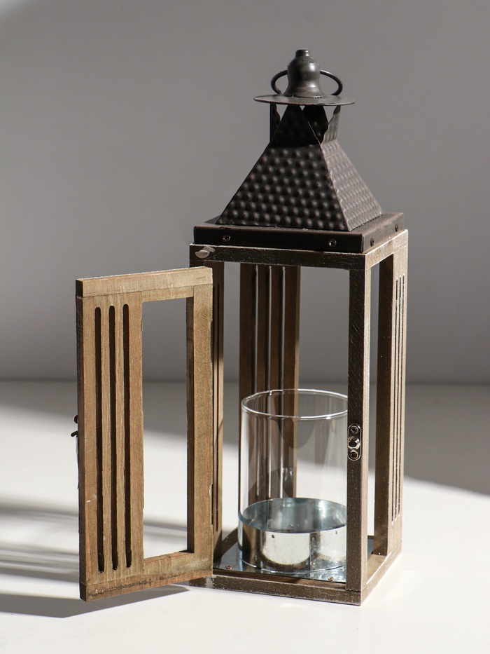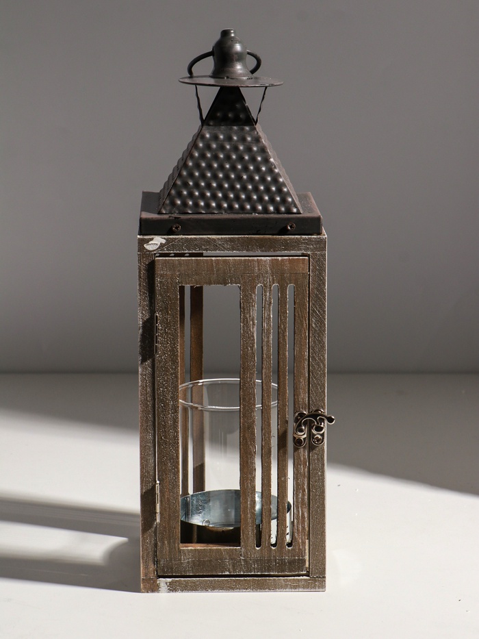 Подсвечник дерево на 1 свечу "Фонарь, окна с рейками" d=7,3 см 11,2х11,2х34 см