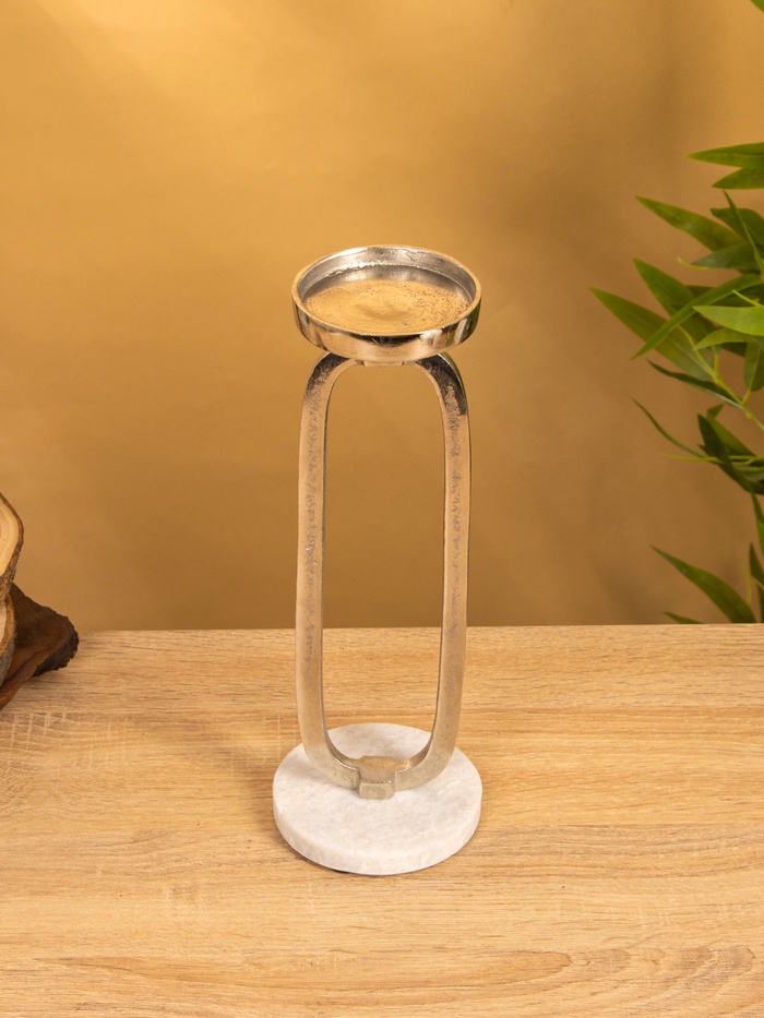 Подсвечник "Эллипс" 10х10х30 см, d 7,5 см, алюминий, мрамор