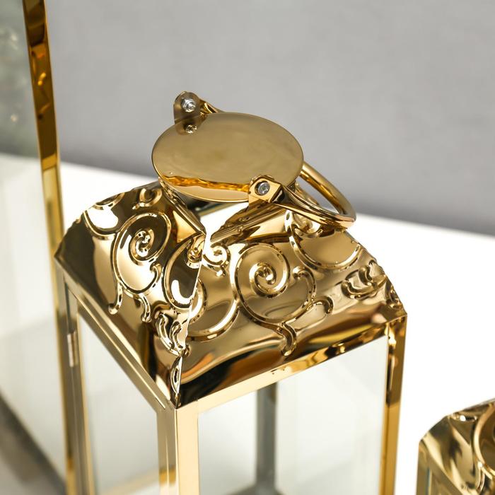Подсвечник-фонарь на 1 свечу «Завитки», золото, набор 3 шт., 55×18×18 см; 37×14×14 см; 24×10×10 см