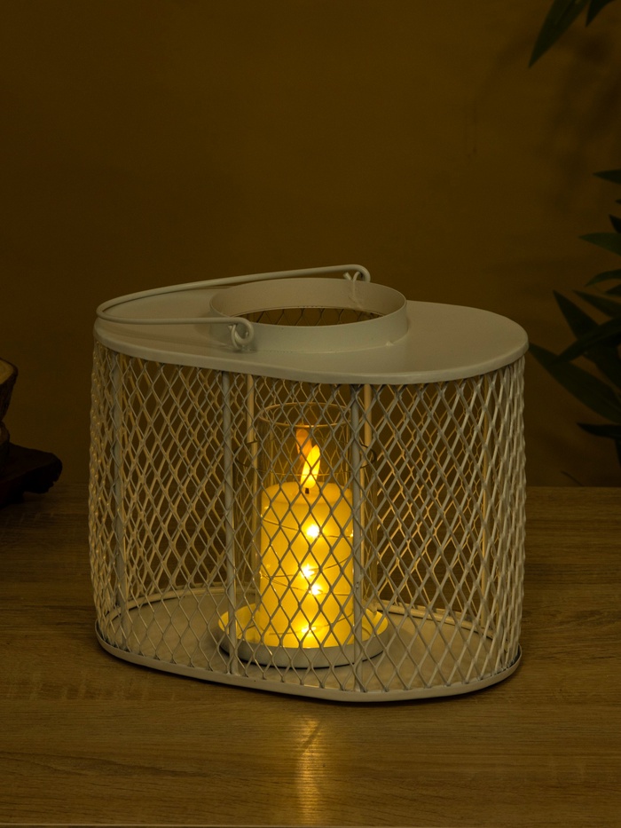Подсвечник фонарь со стеклянной колбой 19,5х23х15,5 см, d 10 см, металл, цв. белый