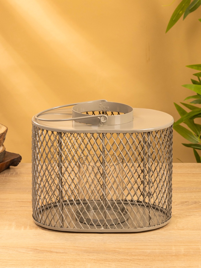 Подсвечник фонарь со стеклянной колбой 19,5х23х15,5 см, d 10 см, металл, цв. серый