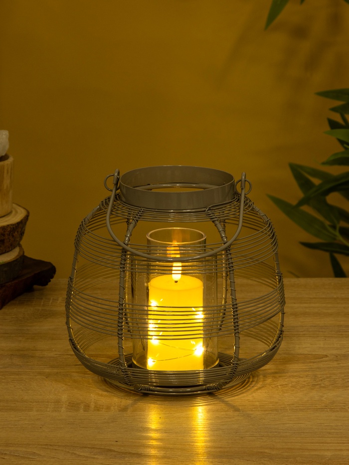 Подсвечник фонарь со стеклянной колбой 19х19х18 см, d 7,5 см, металл, цв. серый