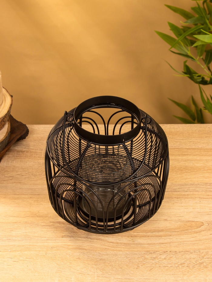 Подсвечник фонарь со стеклянной колбой 19х19х19,5 см, d 8,5 см, металл, цв. Чёрный