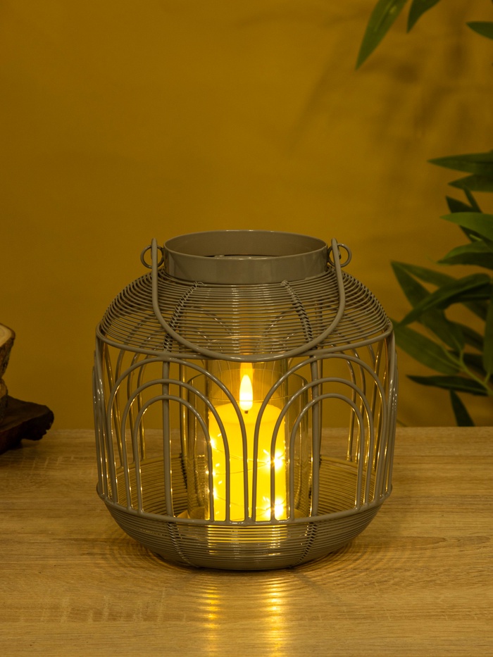 Подсвечник фонарь со стеклянной колбой 19х19х19,5 см, d 8,5 см, металл, цв. Серый