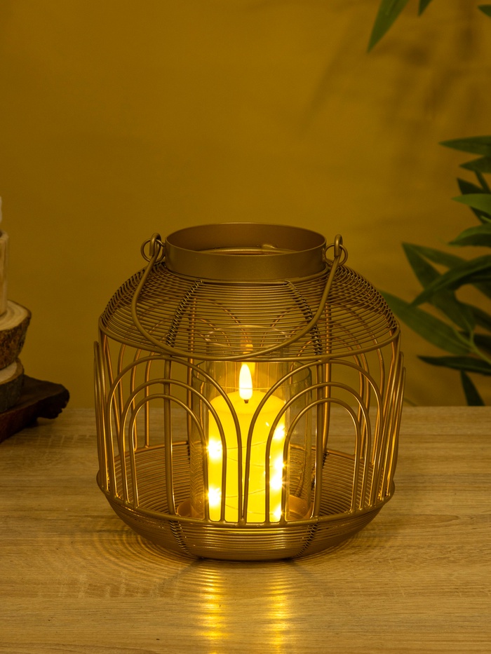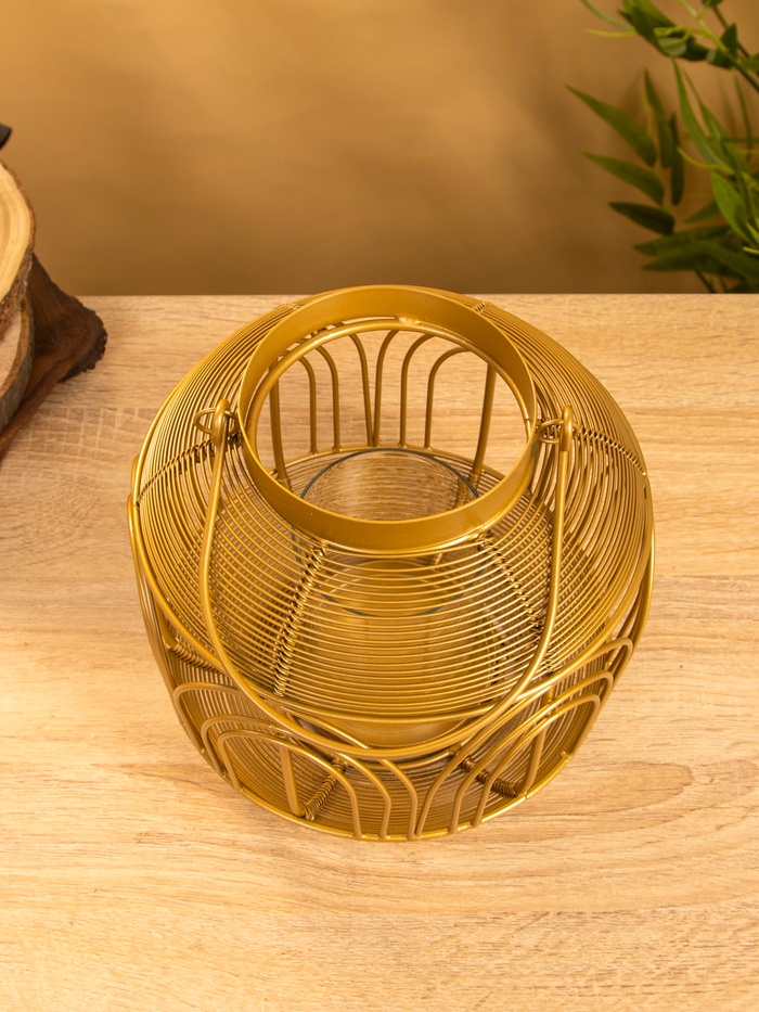 Подсвечник фонарь со стеклянной колбой 19х19х19,5 см, d 8,5 см, металл, цв. Золото
