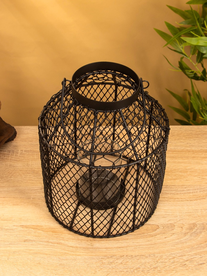 Подсвечник фонарь со стеклянной колбой 20х20х26 см, d 10 см, металл, цв. черный