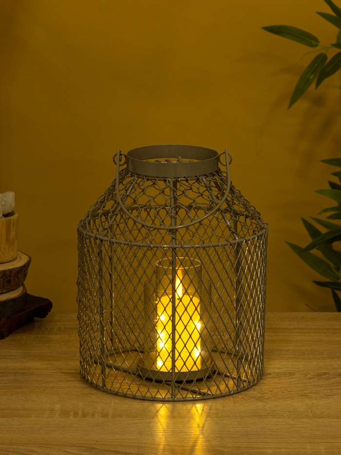 Подсвечник фонарь со стеклянной колбой 20х20х26 см, d 10 см, металл, цв. серый