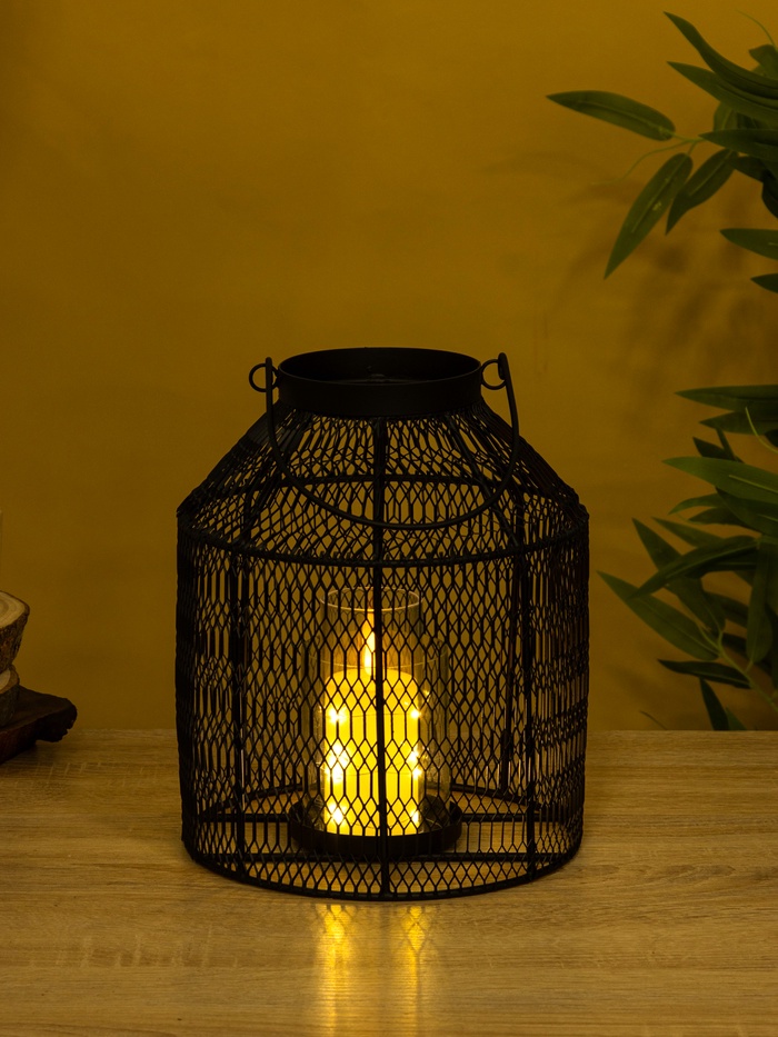 Подсвечник фонарь со стеклянной колбой 20х20х26 см, d 9 см, металл, цв. черный