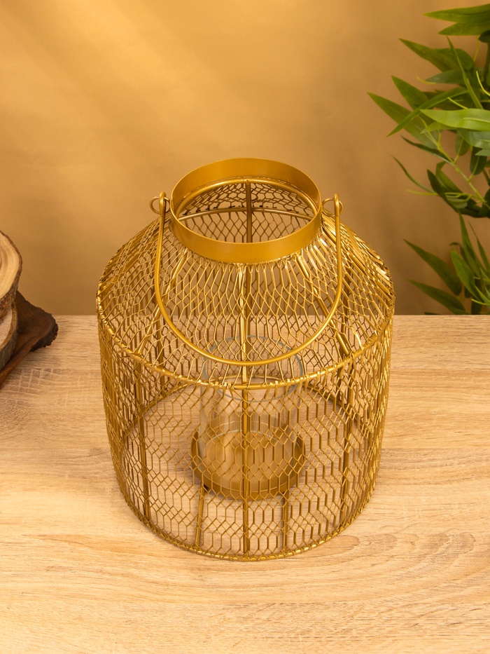 Подсвечник фонарь со стеклянной колбой 20х20х26 см, d 9 см, металл, цв. золото
