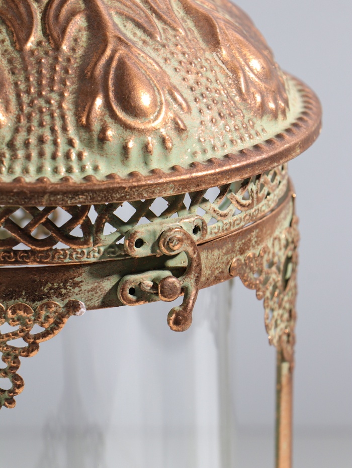 Подсвечник металл на 1 свечу "Перья" медь с белой патиной d=12,5 см 18х18х42 см