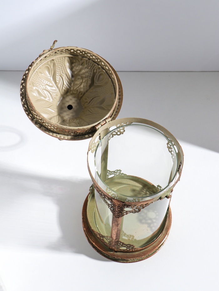 Металлический подсвечник на 1 свечу «Клетка с цветочками с розовой птицей», белый, 28.5×12×12 см