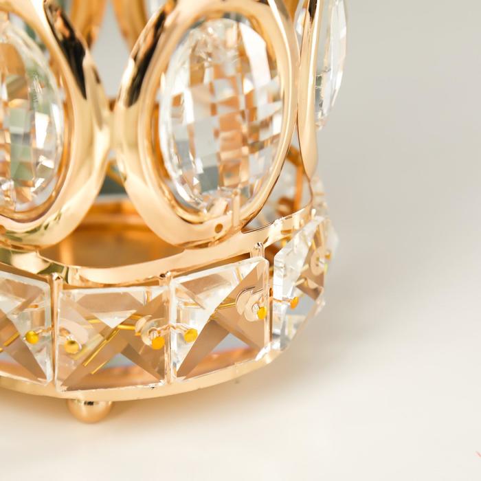 Подсвечник металл, стекло на 1 свечу «Овалы и квадраты», золото, 13.2×9×9 см