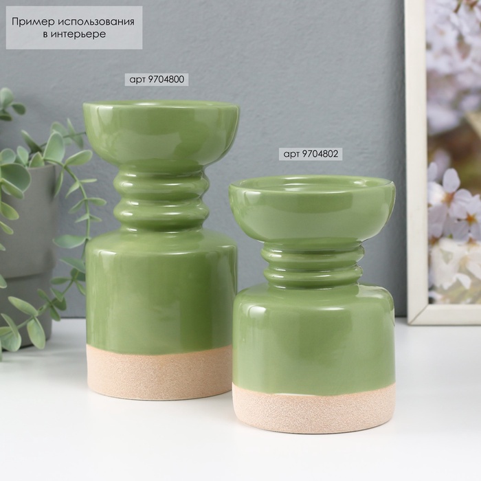 Подсвечник на 1 свечу «Атлант», песочно-зелёный, 9.5×9.5×17.5 см