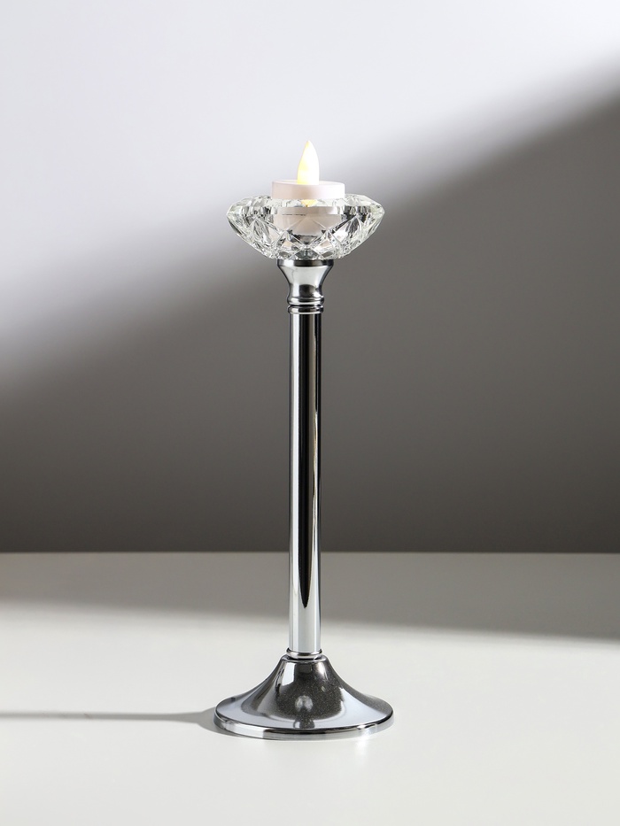 Подсвечник на 1 свечу «Кристальная чаша», d=5 см, под серебро, 9×9×27 см