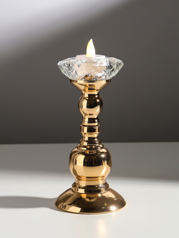 Подсвечник на 1 свечу «Кристальная чаша. Фигурный», d=5 см, под золото, 8×8×19 см