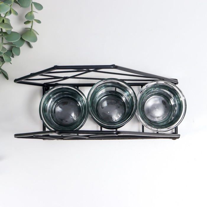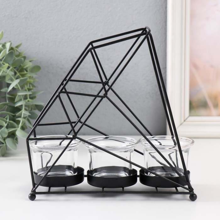 Подсвечник на 3 свечи «Лофт. Трапеция», металл, стекло, чёрный, 21×7×18 см