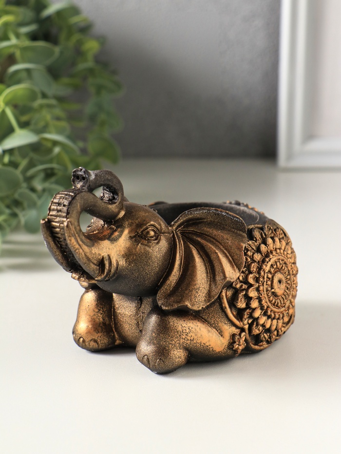Подсвечник "Слон индийский лежит" размер 8х13х7 см, цвет бронза винтаж