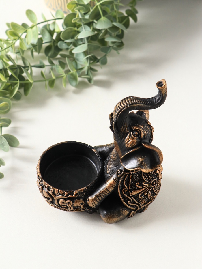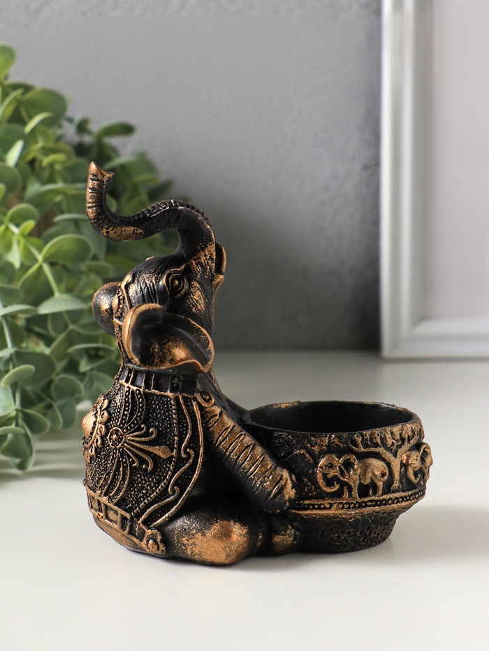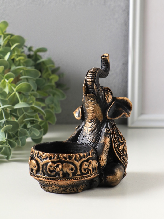Подсвечник "Слон с чашей" размер 12х12х8 см, цвет бронза винтаж