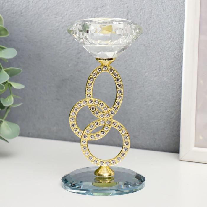 Подсвечник стекло на 1 свечу "Сплетение колец" стразы золото 16,5х8х8 см