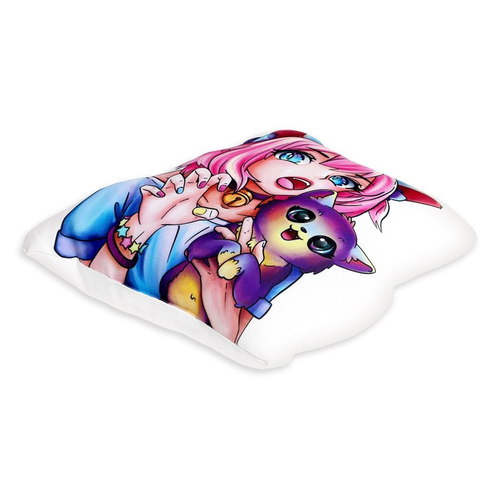Подушка «Яркая девчонка с котиком» — верный спутник на пути к крепкому и безмятежному сну, а также стильный акцент в интерьере.