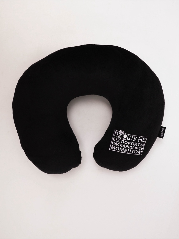 Подушка для путешествий бархатная "Прошу не беспокоить", черная, 28 х 30 х 9 см
