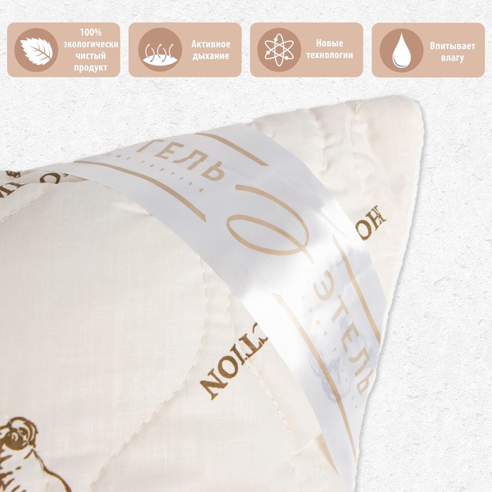 Наполнитель состоит из овечьей шерсти и нежнейшего лебяжьего пуха. Подушка не только обеспечивает правильное положение тела ночью, но и:
