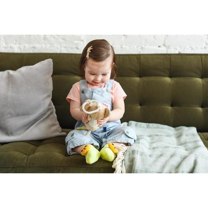 Подвесная игрушка поможет малышу сформировать представление об окружающем мире. Ребёнок познакомится с разными цветами и фигурами, будет с интересом рассматривать привлекательный предмет, тянуться к нему и изучать на ощупь. Такие занятия развивают зрительное восприятие, концентрацию внимания, двигательные навыки и тактильные ощущения. Потянув за шнурок, заиграет музыка,ее звучание не прекратится, пока шнурок не вернется в исходное положение. . Изделие крепится к кроватке или манежу, его можно подвесить на дуги коврика. Возьмите на прогулку любимую игрушку малыша и зафиксируйте её на ручке автолюльки или коляски. Товар выполнен из безопасных для здоровья материалов. Качество подтверждено сертификатом соответствия ЕАС. Использование игрушки детьми разрешено только под присмотром взрослых.