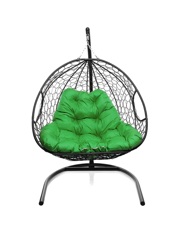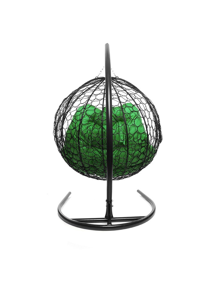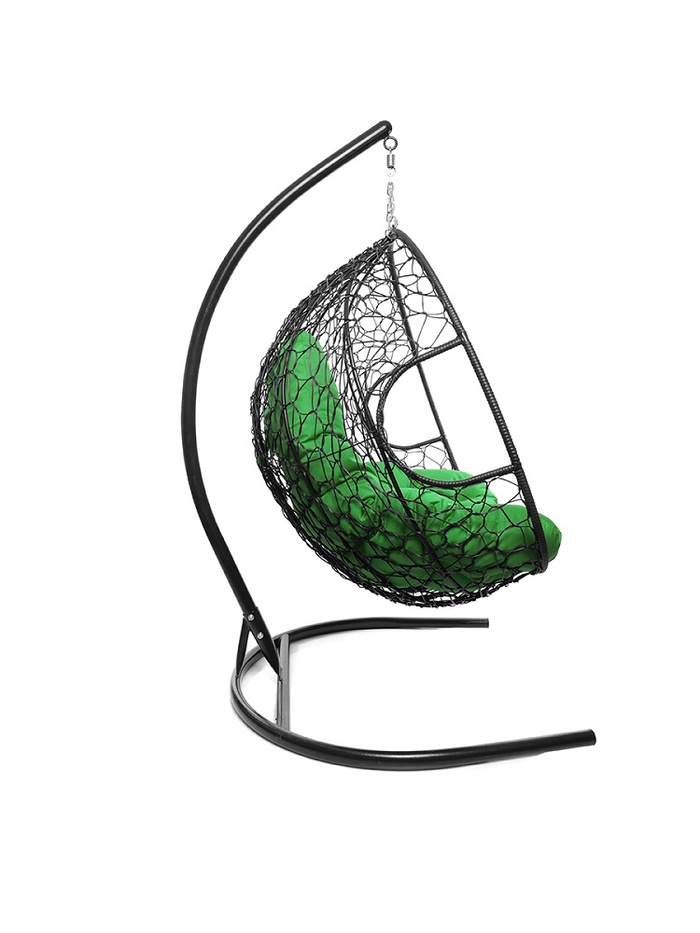 Подвесное кресло-качели "Для двоих", черное, зелёная подушка, стойка
