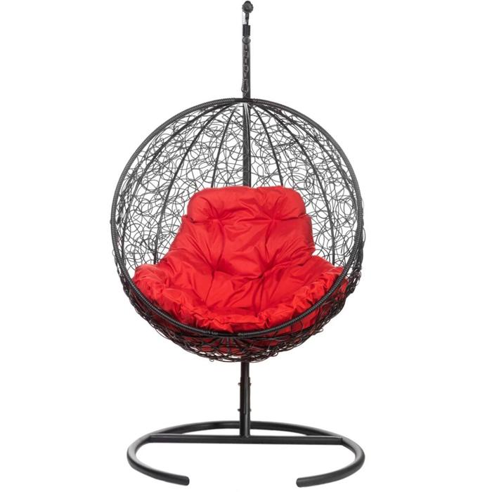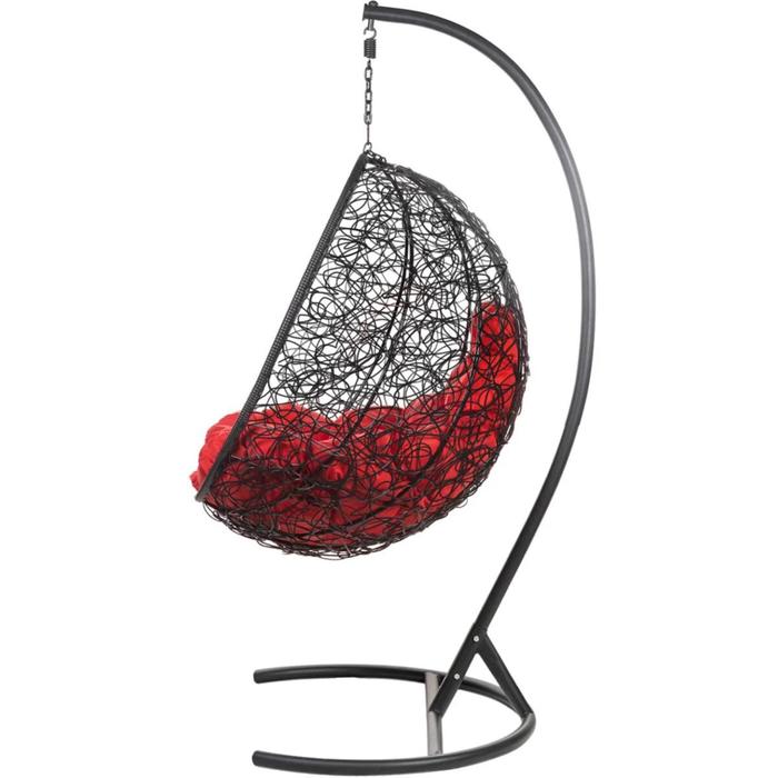 Подвесное кресло "Kokos" Black, красная подушка, стойка 195*95*75 см