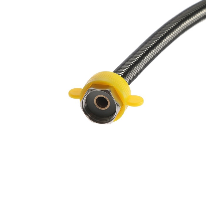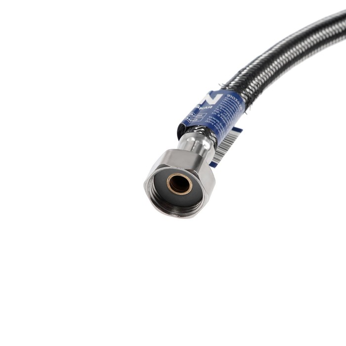 Имеет подводка стандартный диаметр 1/2" и соединения типа гайка-гайка, что обеспечивает простоту установки и совместимость с различными сантехническими устройствами.