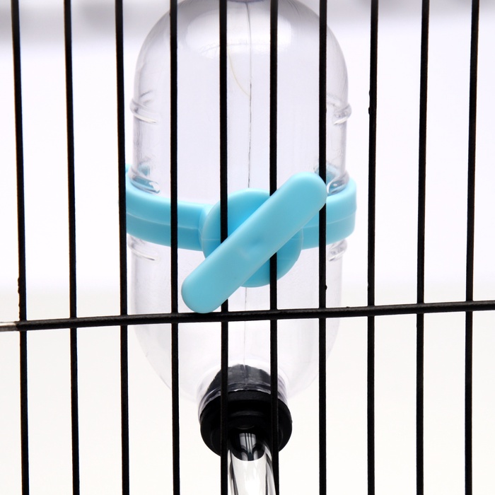 Поилка для грызунов 60 мл, 12×4 см, прозрачная с голубым креплением