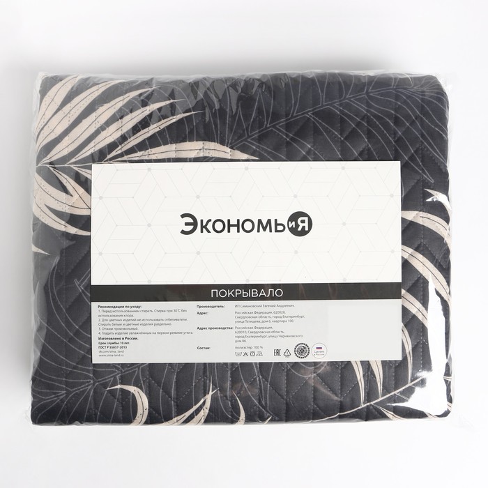 Покрывало 2сп Экономь и Я "Пальмовые листья" 180*210±5см, 100% полиэстер, 190гр/м2