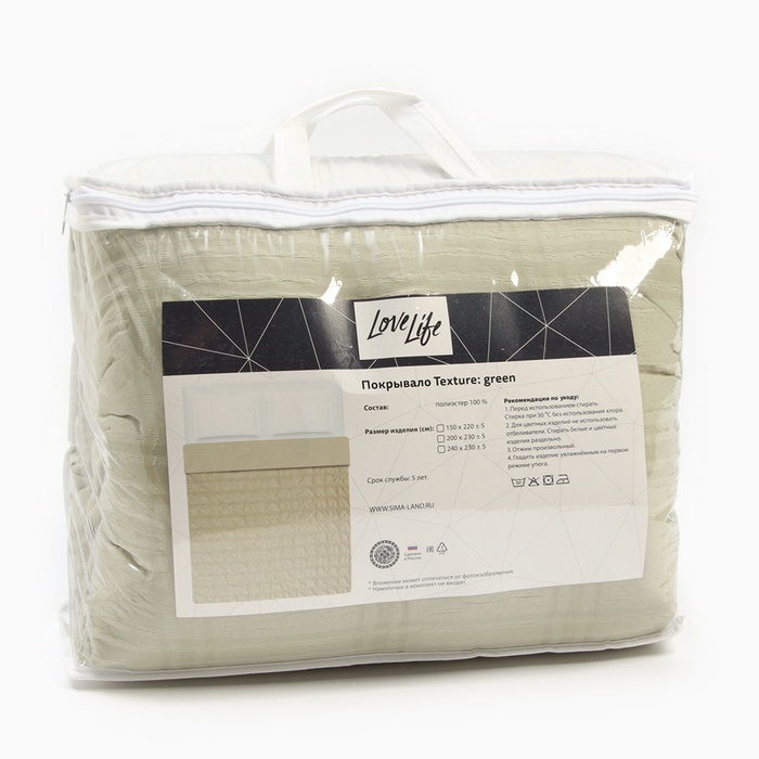 Покрывало евро LoveLife Texture: green, 240×230±5 см, микрофайбер